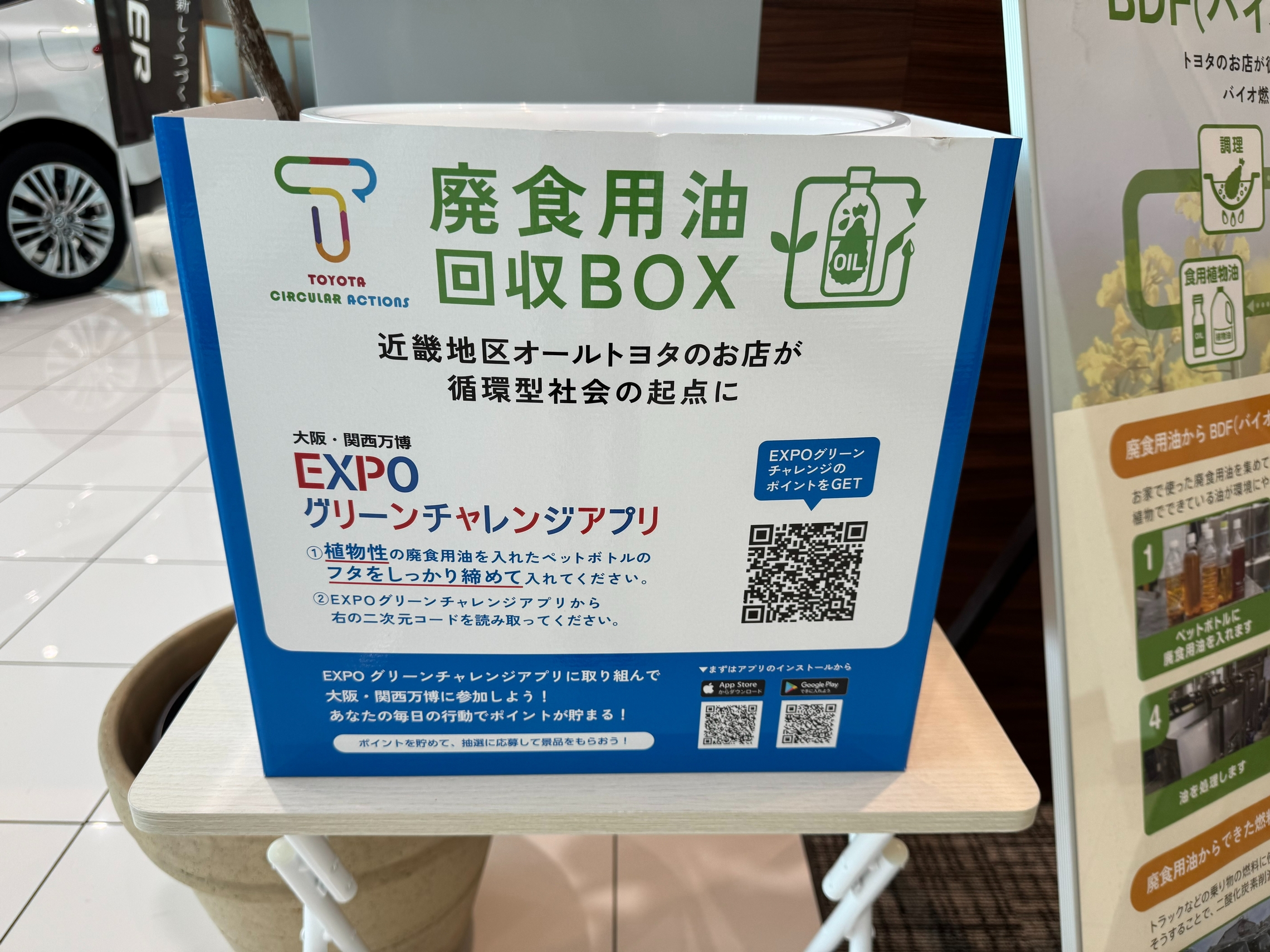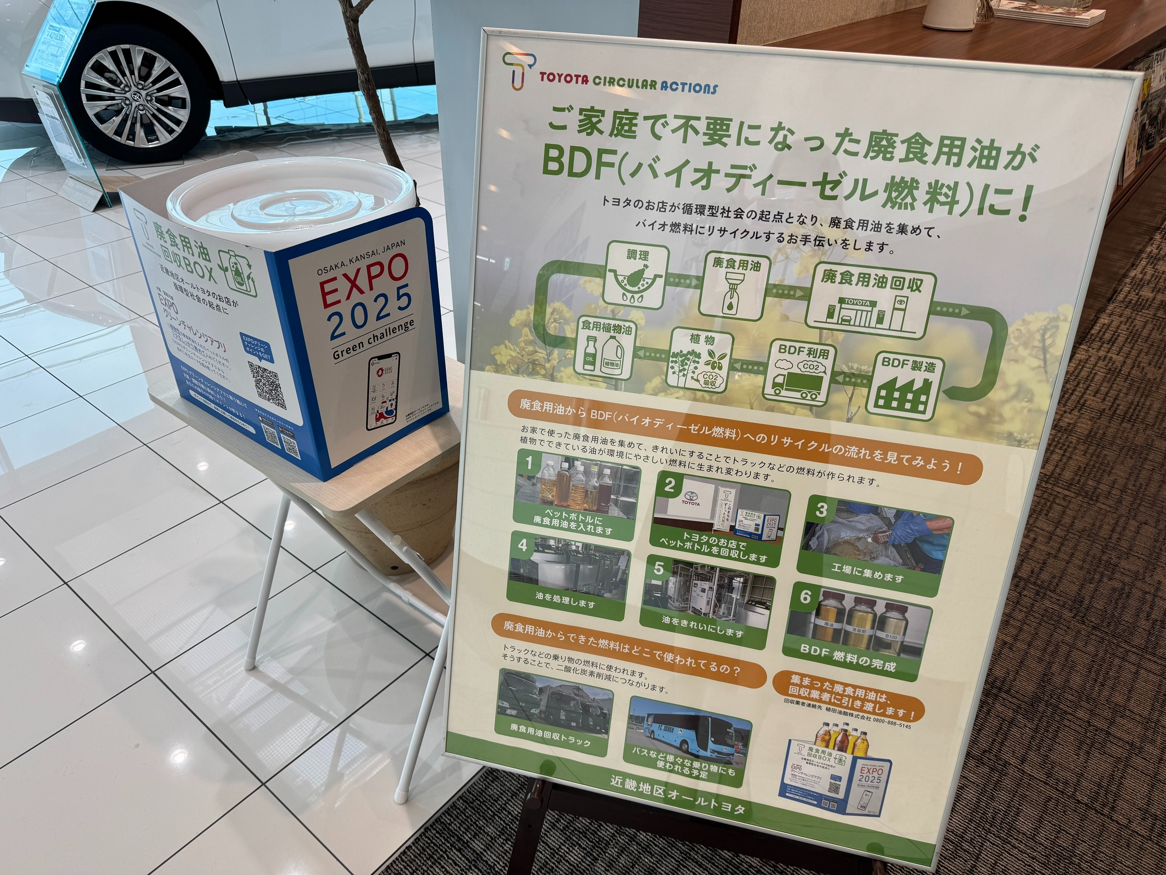 トヨタのお店が循環型社会の起点となり、廃食用油を集めて