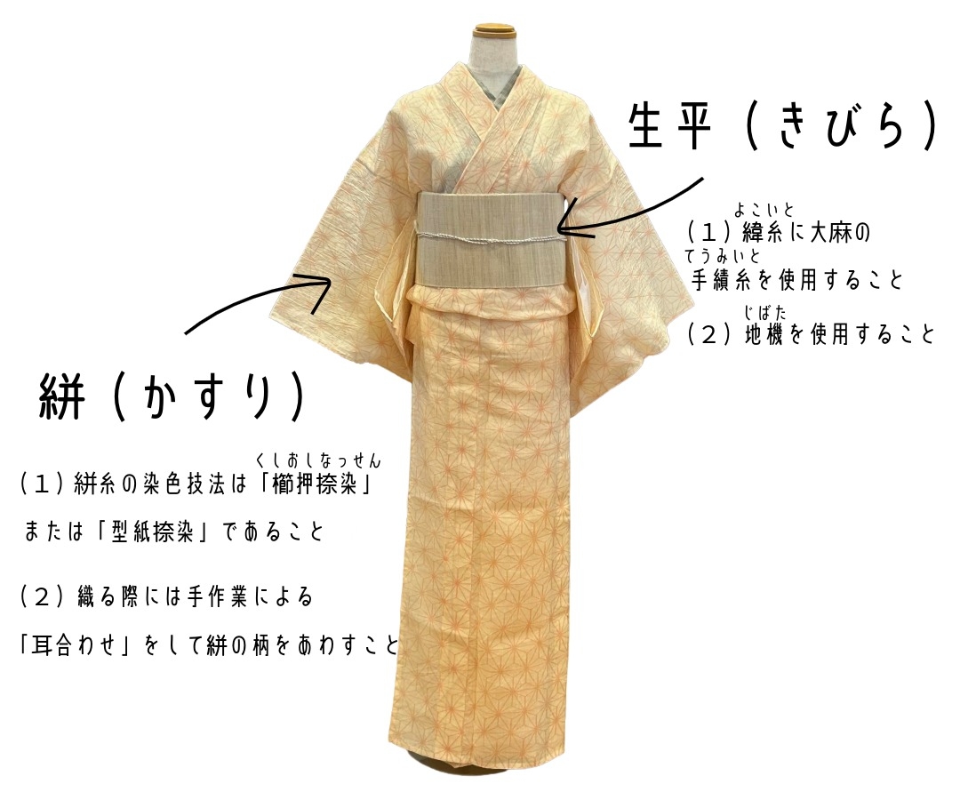 そうした基準のなかで生平(きびら)と絣(かすり)の2種類が作られています(=゚ω゚)ノ