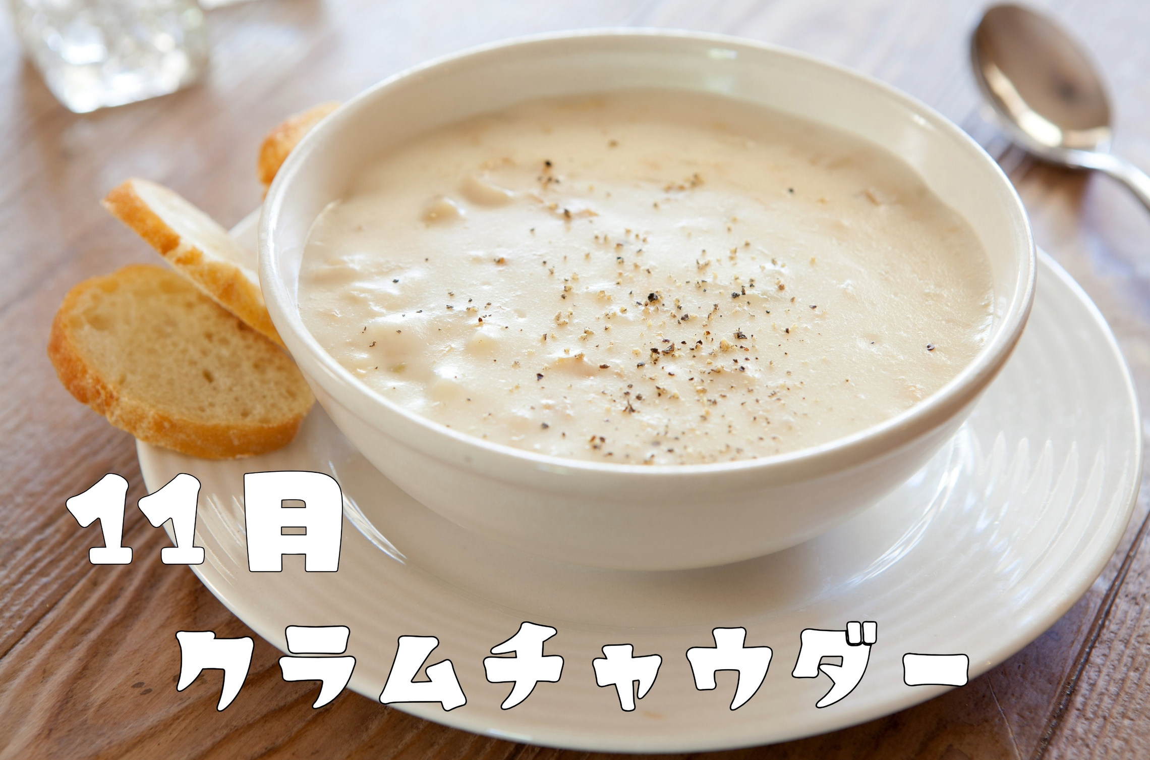 11月は、クラムチャウダーと5種のチーズポタージュの2種類をご用意しております☕