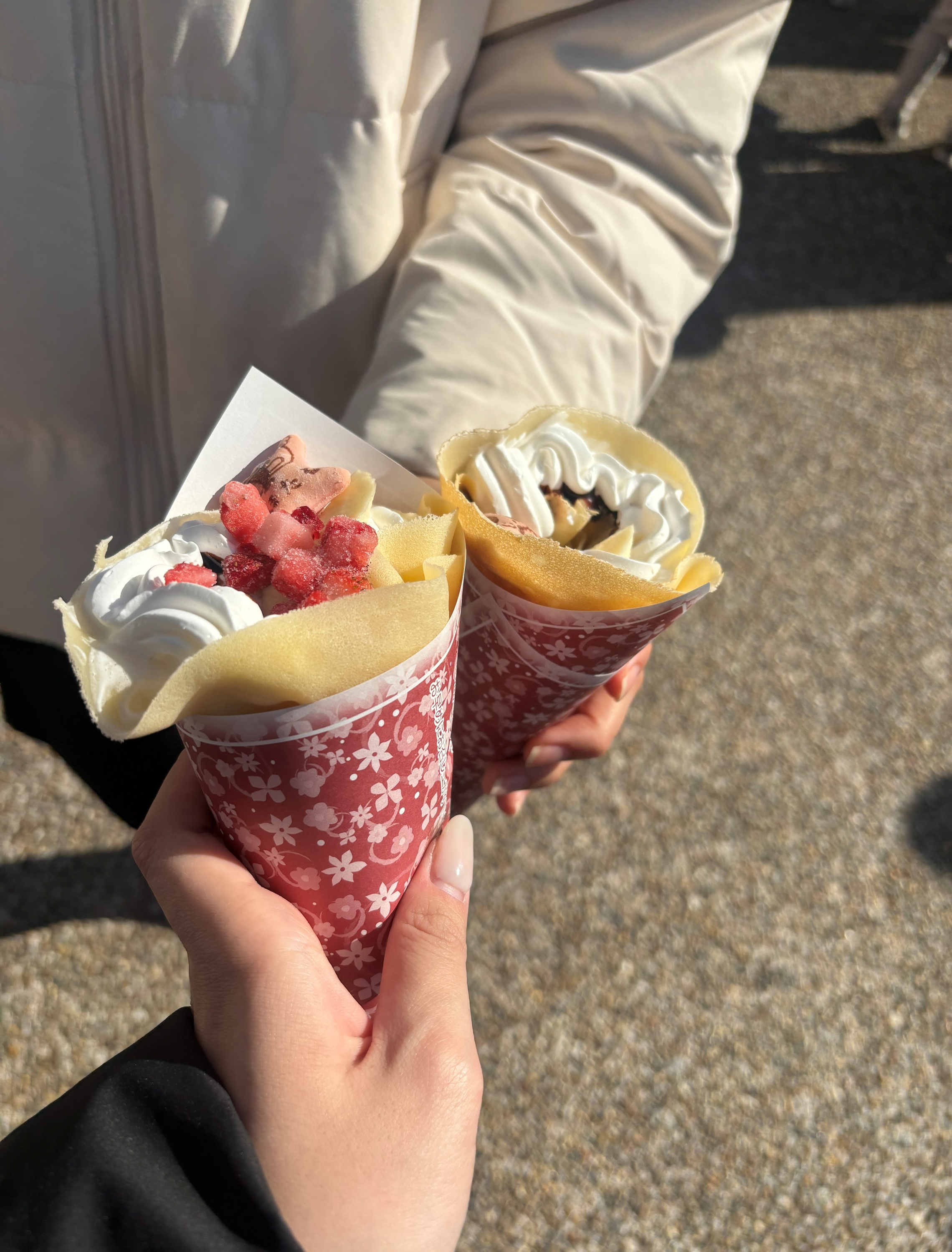 私と言いますと...先輩フロントスタッフとクレープを食べました~