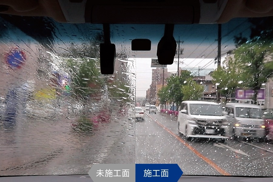 突然の激しい雨や、対向車からの浴びせ水を瞬時に弾く!