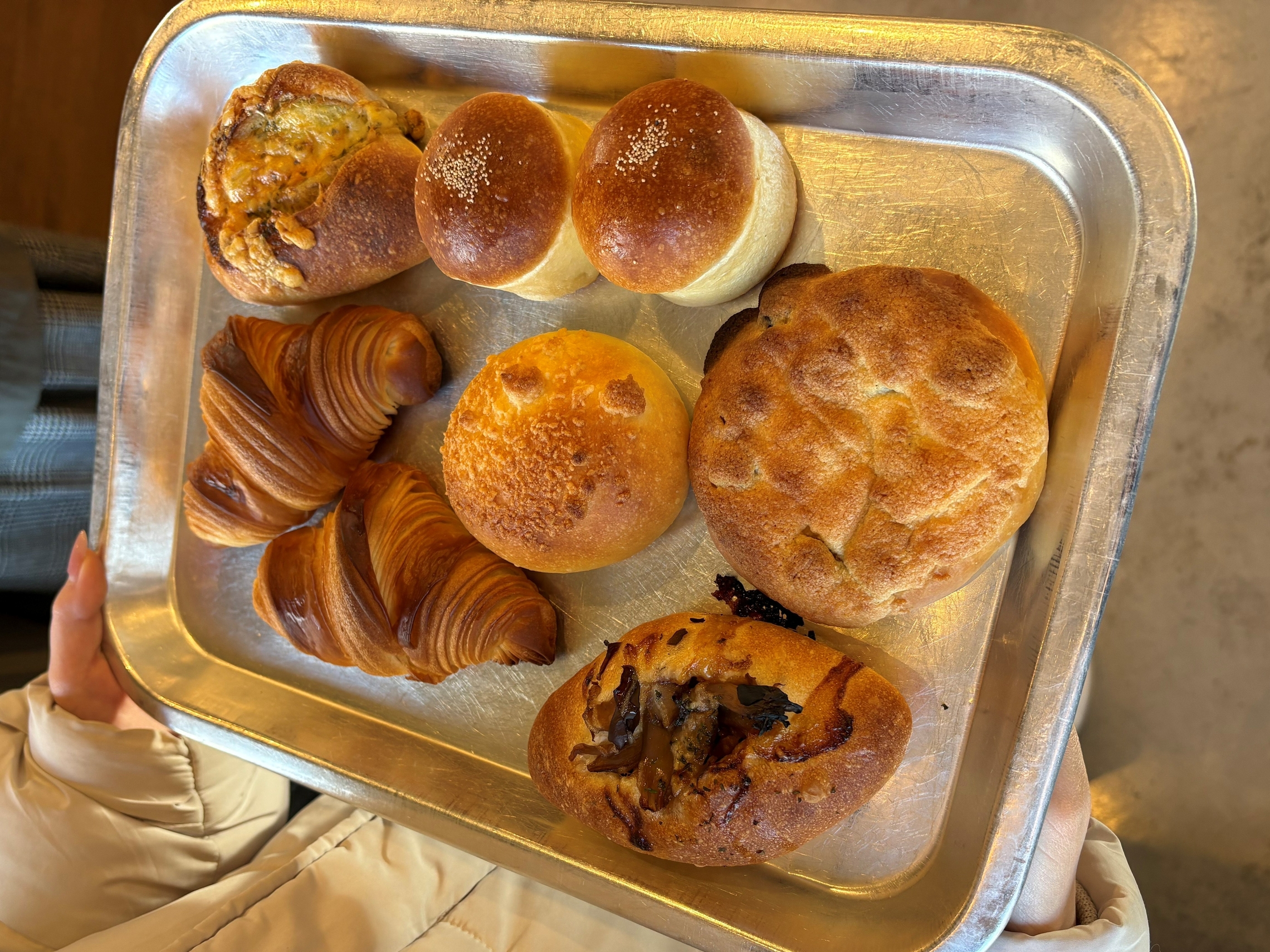 お店に並んでいるパンがどれも美味しそうでついつい取りすぎてしまい、いつもトレーがいっぱいです😇