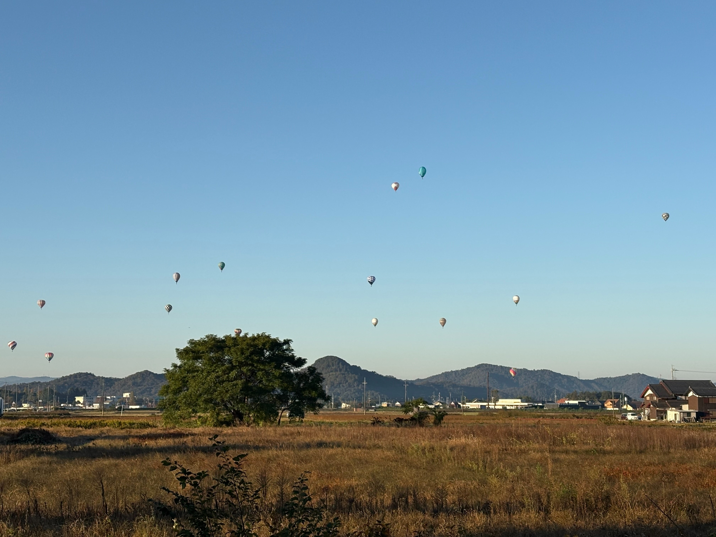 近くの場所でイベントが行われていたようで、天気の良い青空にカラフルな気球がとても映えていました✨✨