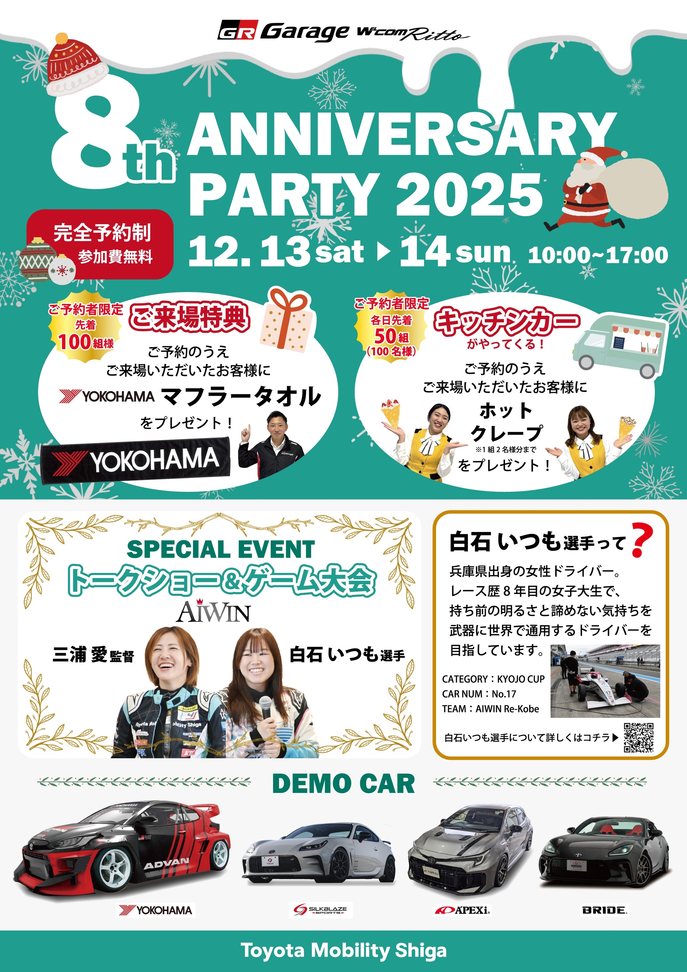 GR Garage ウエルコム栗東にて『アニバーサリーパーティー2025』を開催いたします!