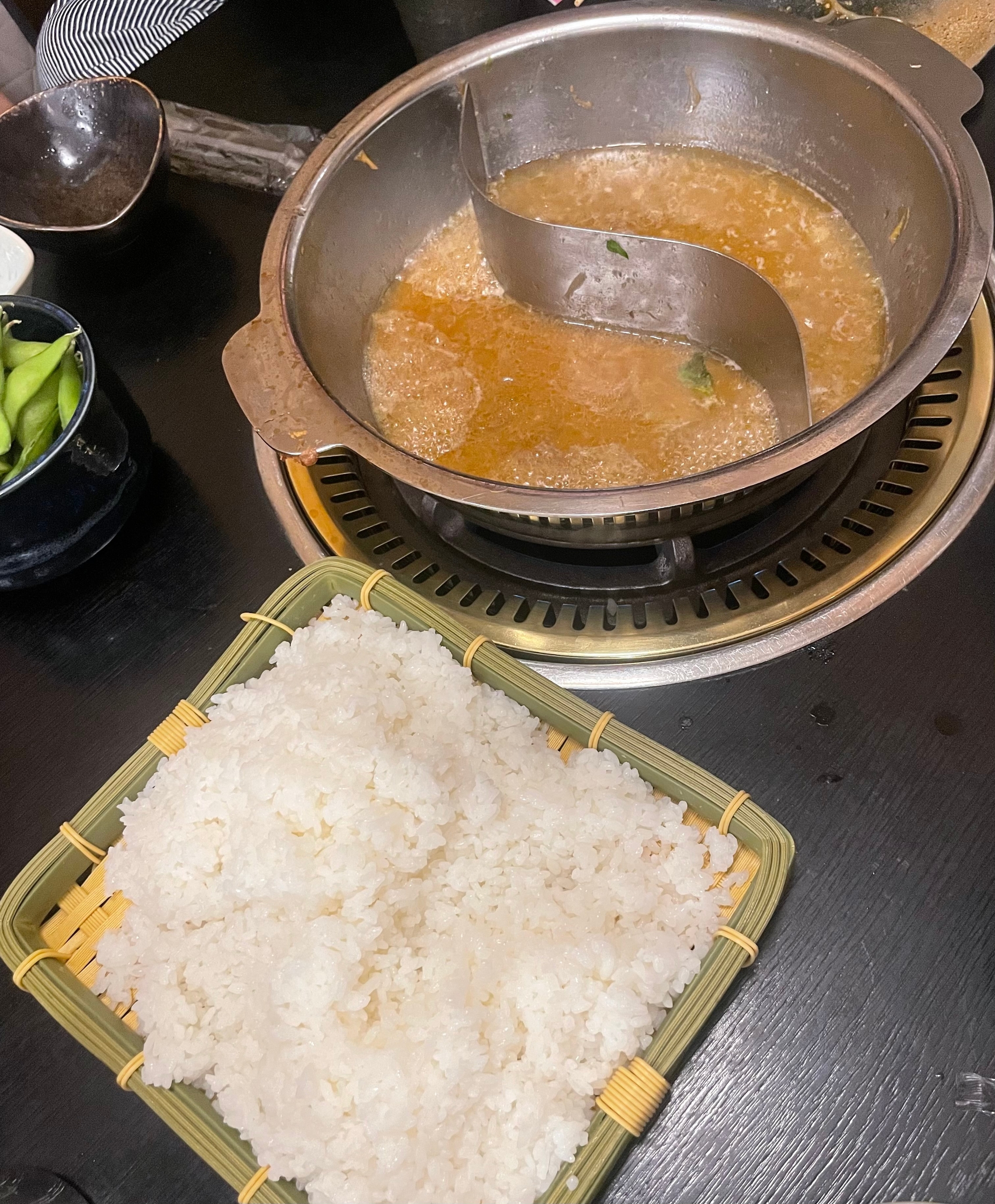 真ん中に仕切りがあるので、2種類のスープのお鍋を楽しむことができました!