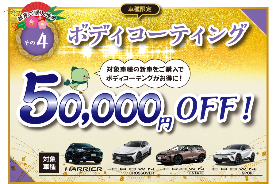 ※当社指定のボディコーティングに限ります。詳しくはスタッフへお尋ねください。
