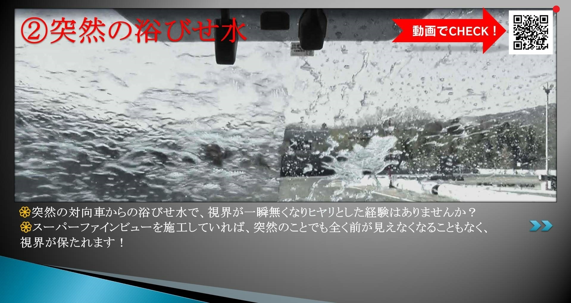 対向車など、突然の浴びせ水