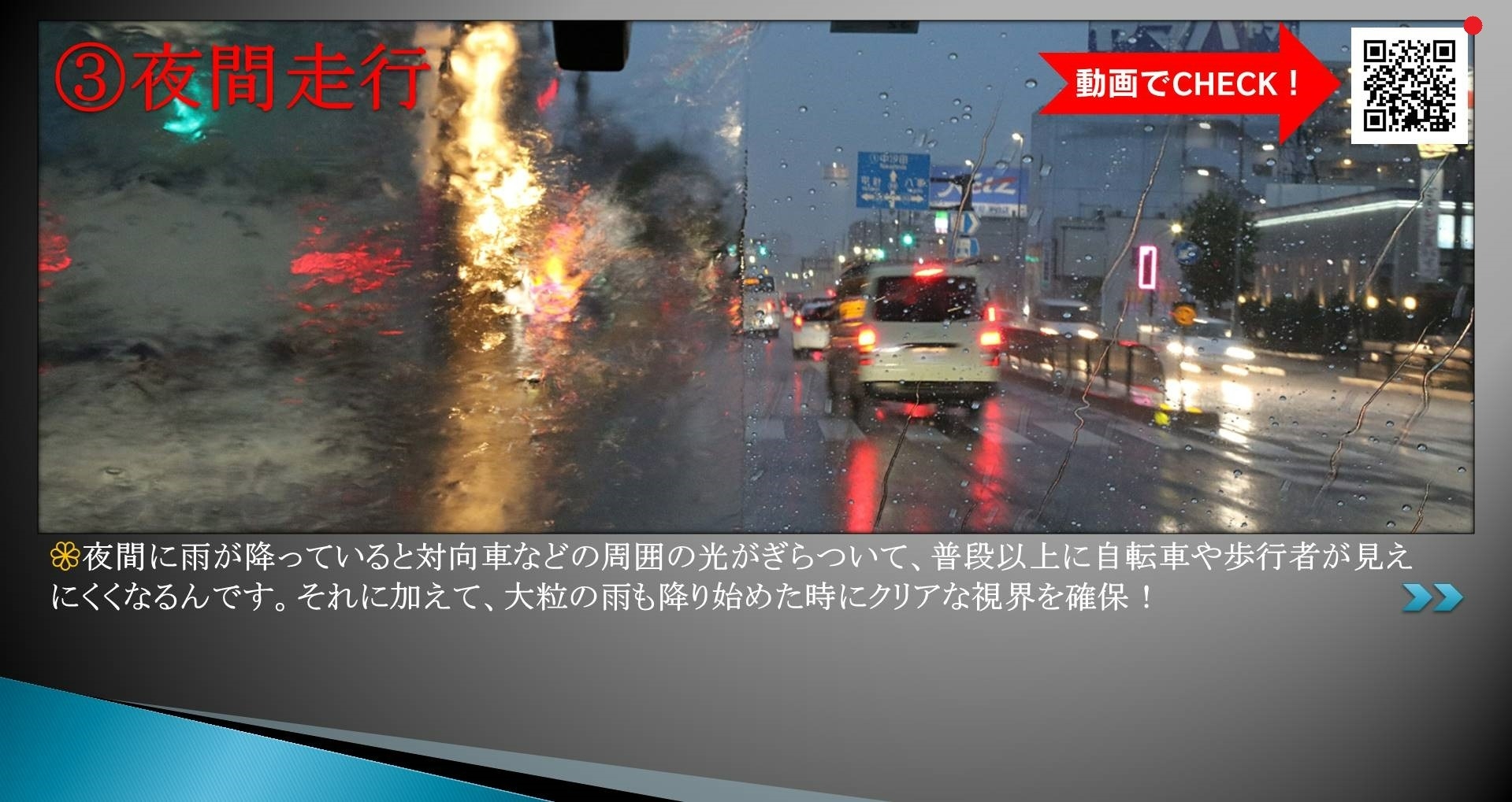 激しい雨の日にはもちろん、夜間走行でも視界をしっかりサポートしてくれます!