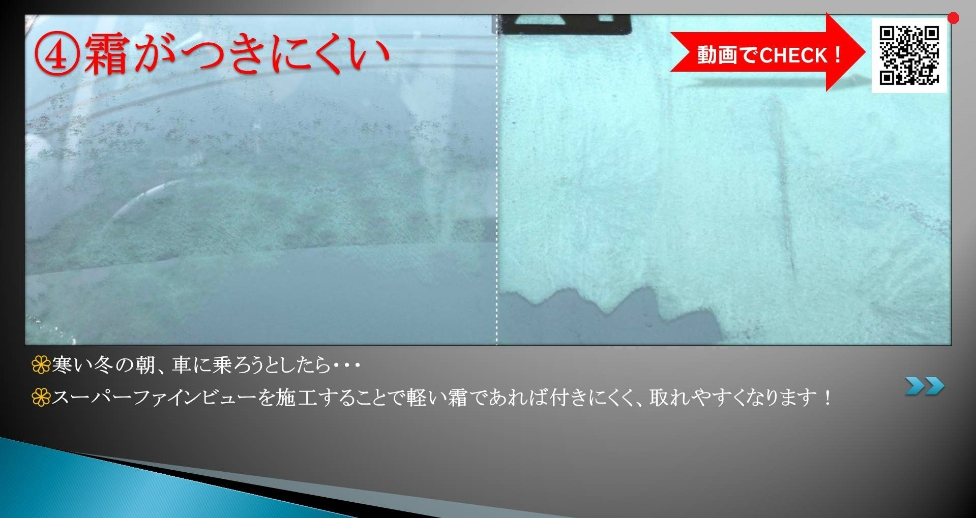QMIスーパーファインビューでコーティングしたガラスはこんな効果があります。