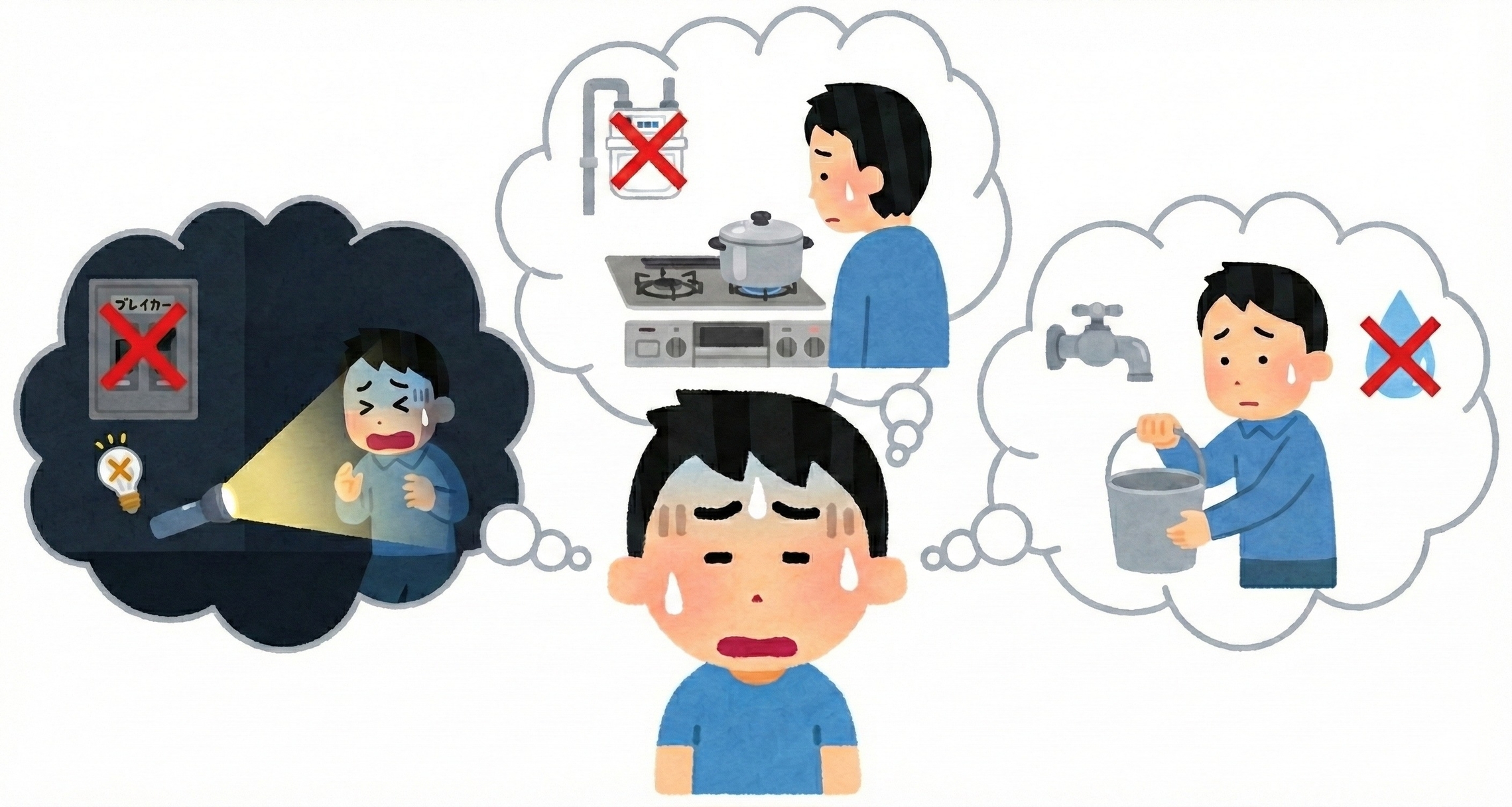 地震が起きると、電気・水道・ガスなどのライフラインがすべて止まってしまう可能性があります。