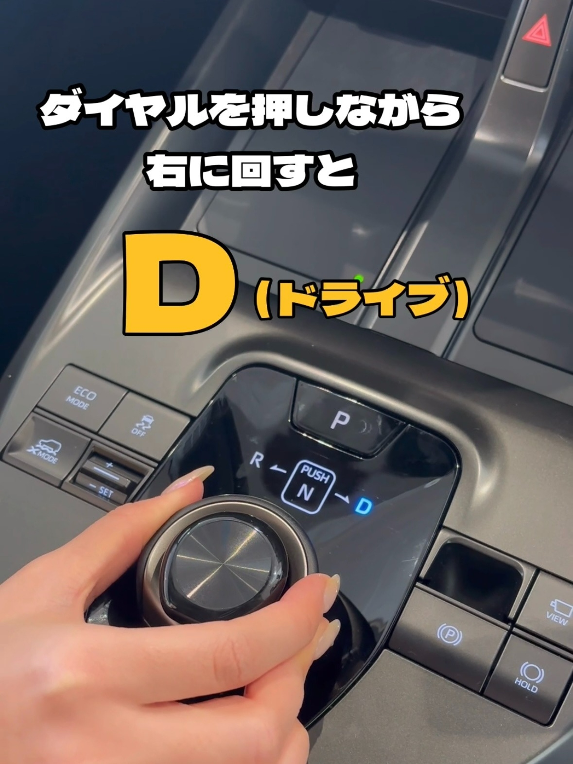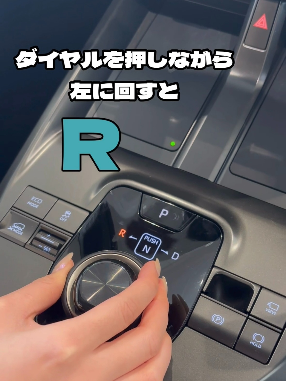右に回す→D(ドライブ) 左に回す→R(リバース)