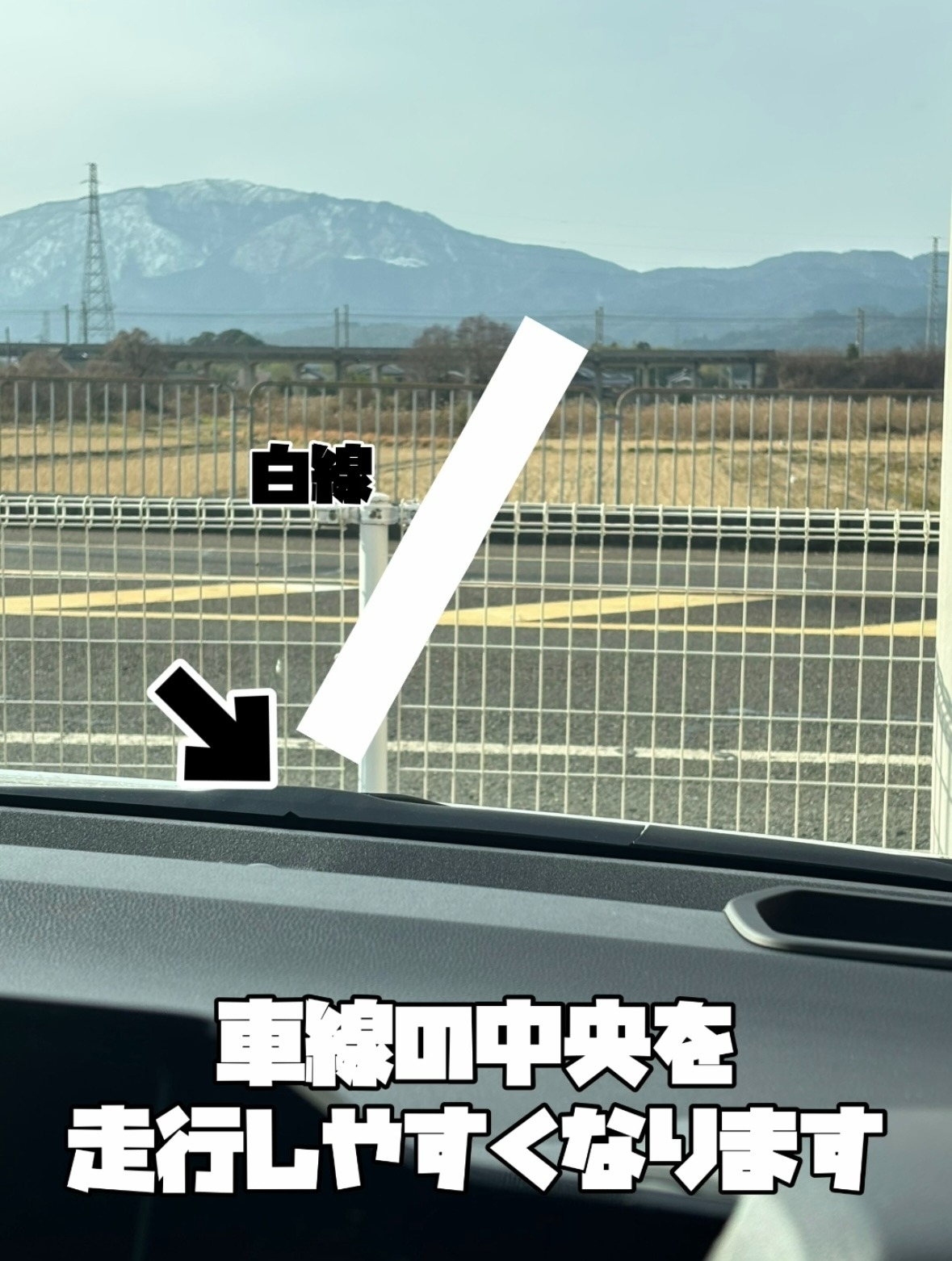 ▲マークと白線を合わせることで車線中央をキープできます!