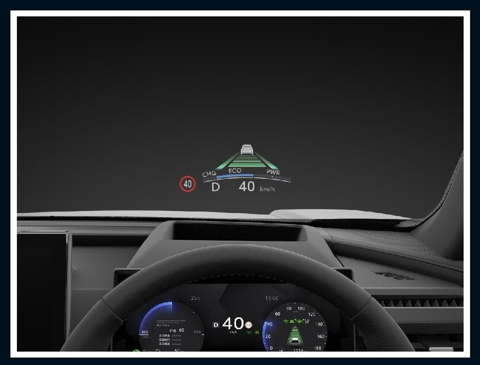 運転に必要な情報をウインドシールドガラスの視野内に投影。