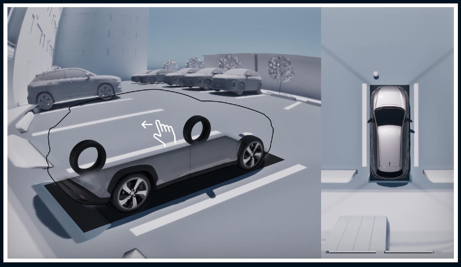 ドライバーの好きな視点から、クルマを透かして周囲を確認できる。