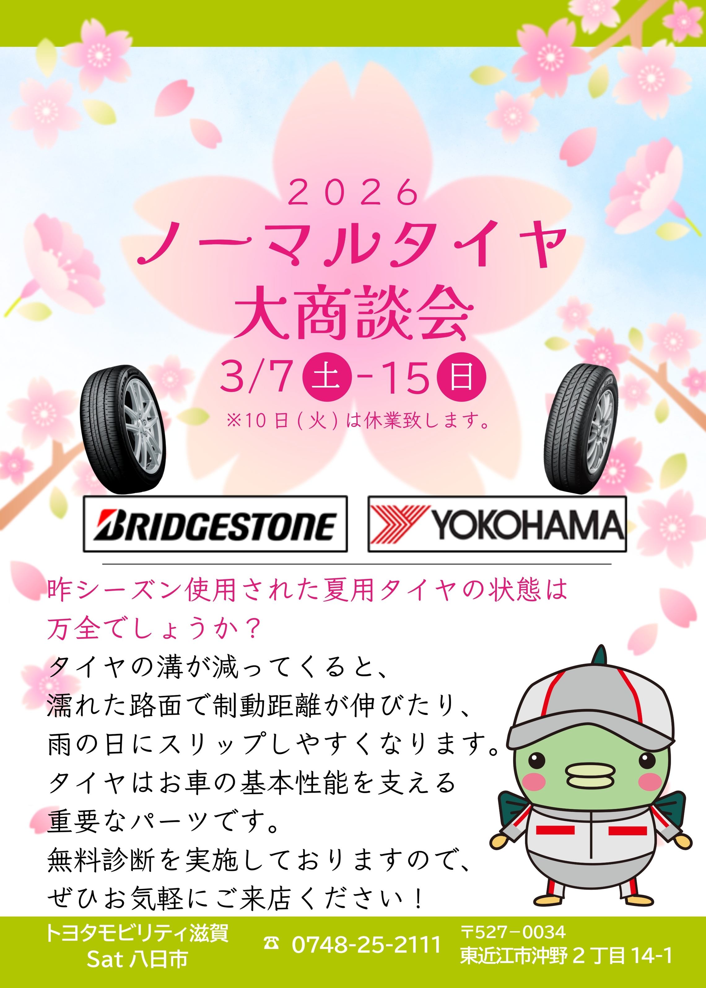 ただいまSat八日市では『タイヤ大商談会』を実施中です🌸