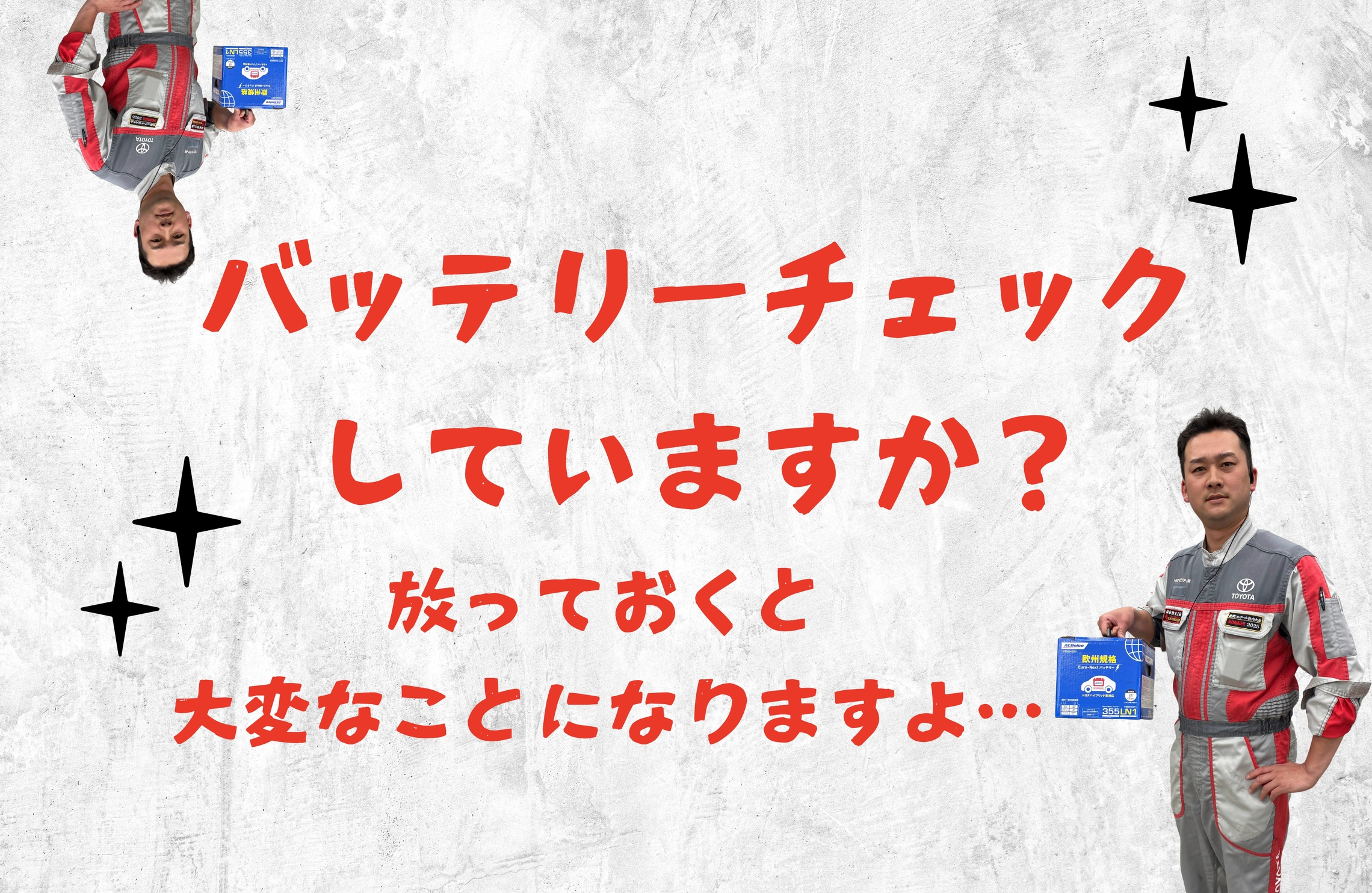 いざ出かけようとした時にバッテリーがあがってしまったら大変ですよね。