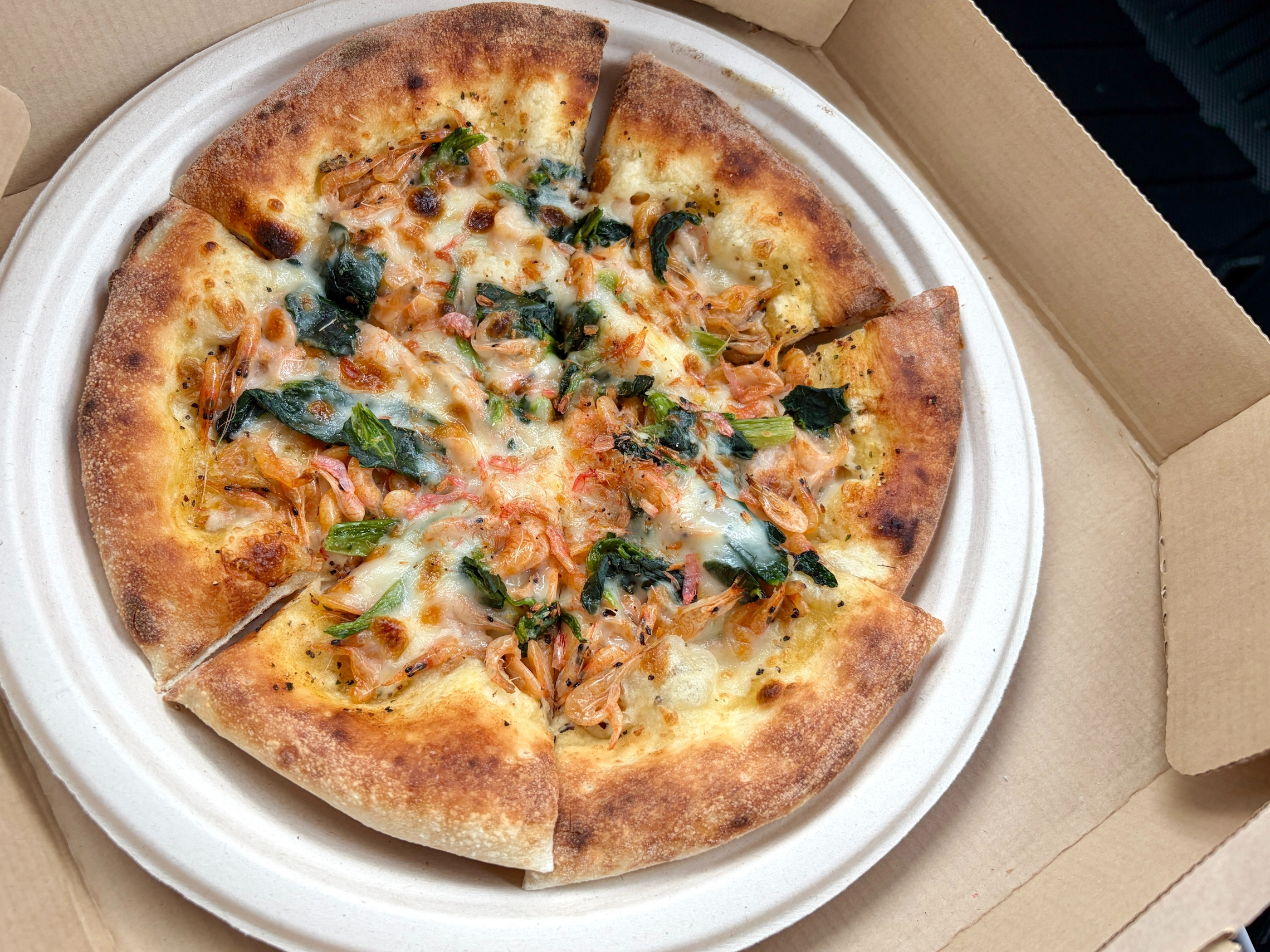 この日は期間限定の【びわ湖の小エビとほうれん草のピザ】を