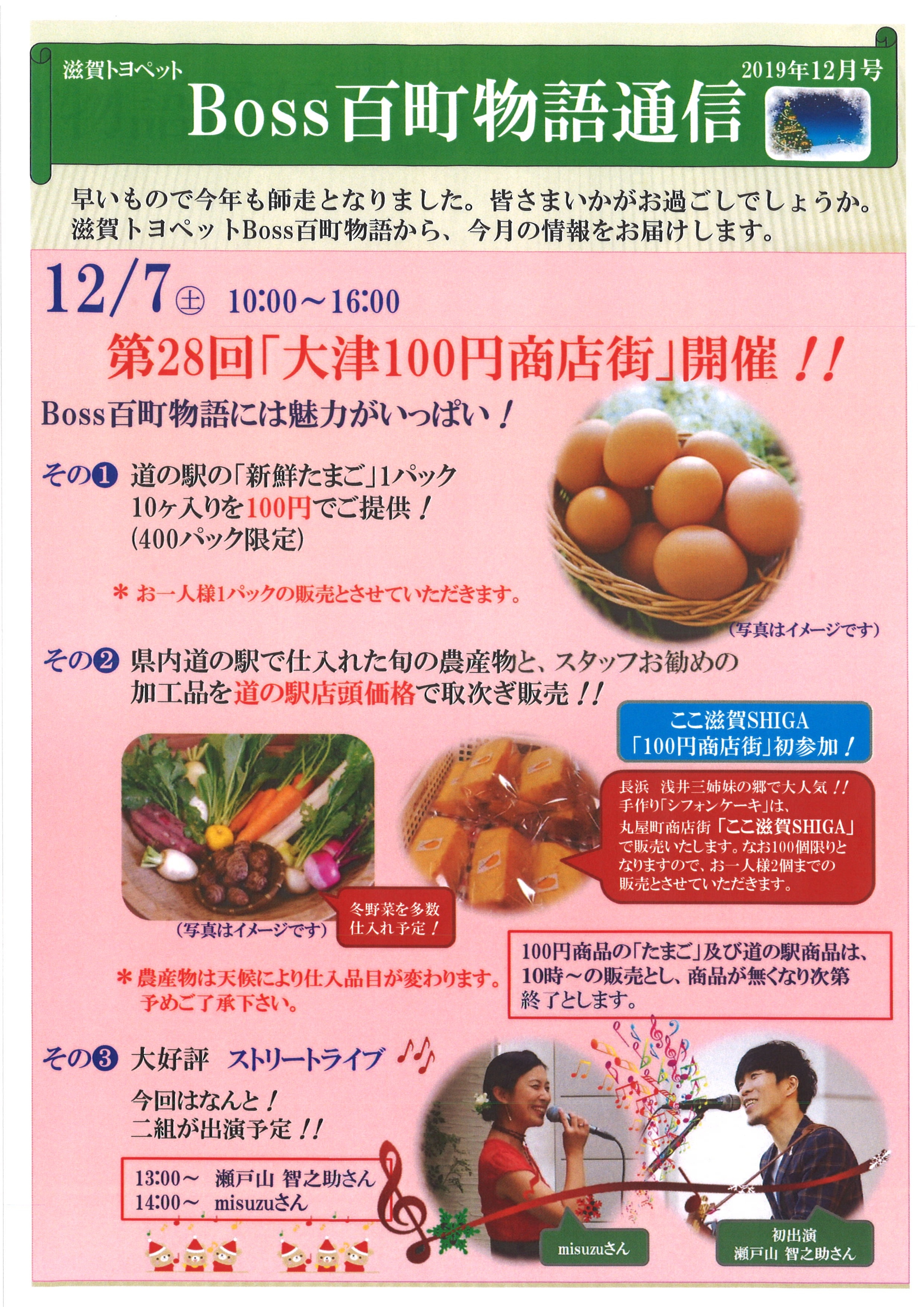 3の倍数月の第1土曜日に開催しております「大津100円商店街」ですが、今年最後の開催となり、商店街の皆さんもたいへん力が入っております(^^♪