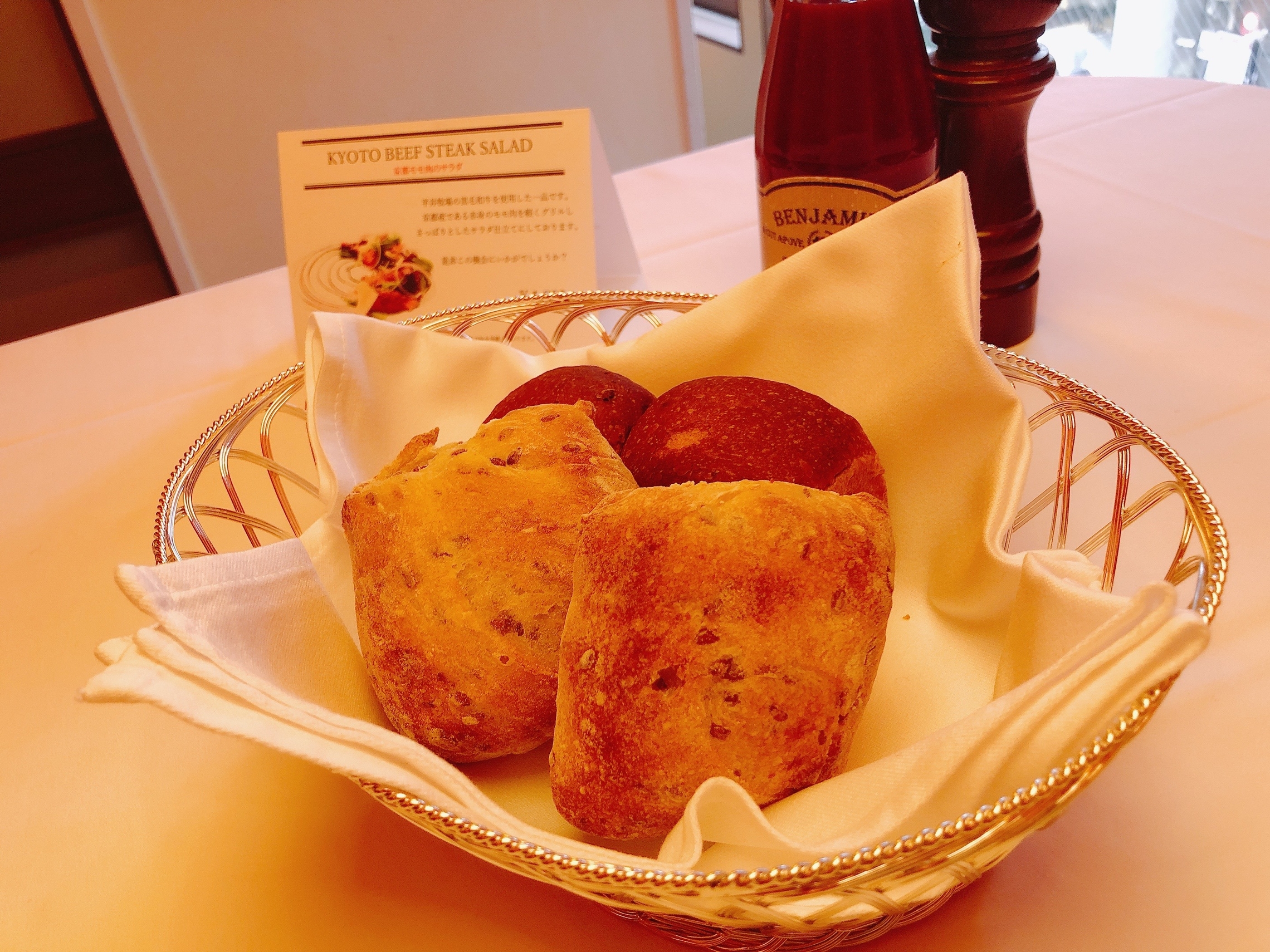 サラダ・スープ・パン・メインのステーキ!!