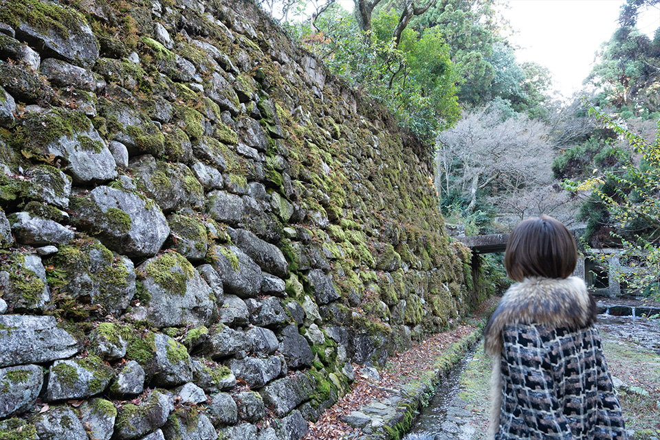 町の至るところに、独特の石積技法「穴太積み」が今も残っています