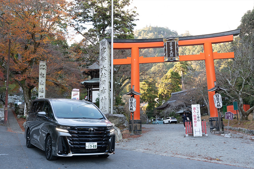 比叡山の麓・坂本の落ち着いた町並みを走り日吉大社へ