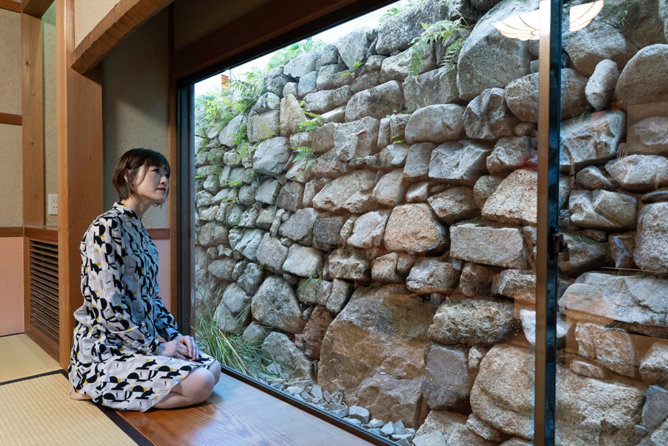 こちらは穴太積みを間近で見られる「離れ」(事前予約が必要)