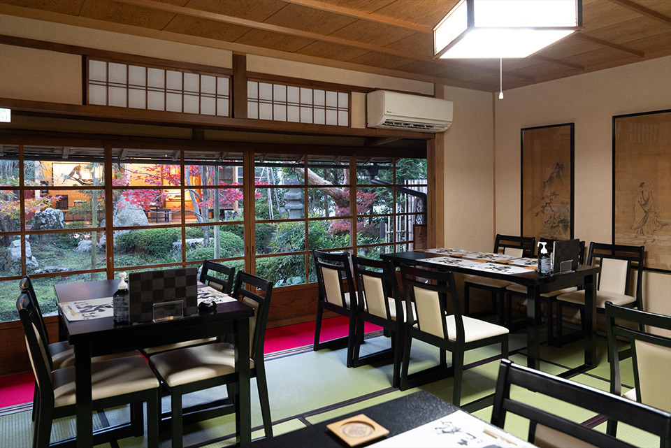 お座敷からは庭園も眺められ、心がすっと和みます