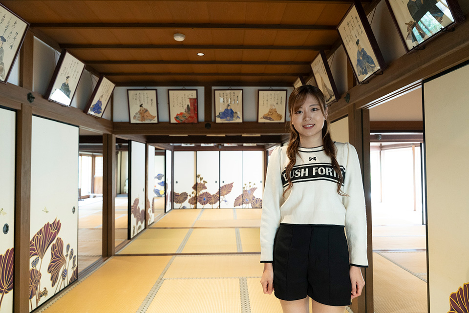 客人をもてなす「華頂殿」。三十六歌仙の額絵と美しい襖絵が出迎えてくれます