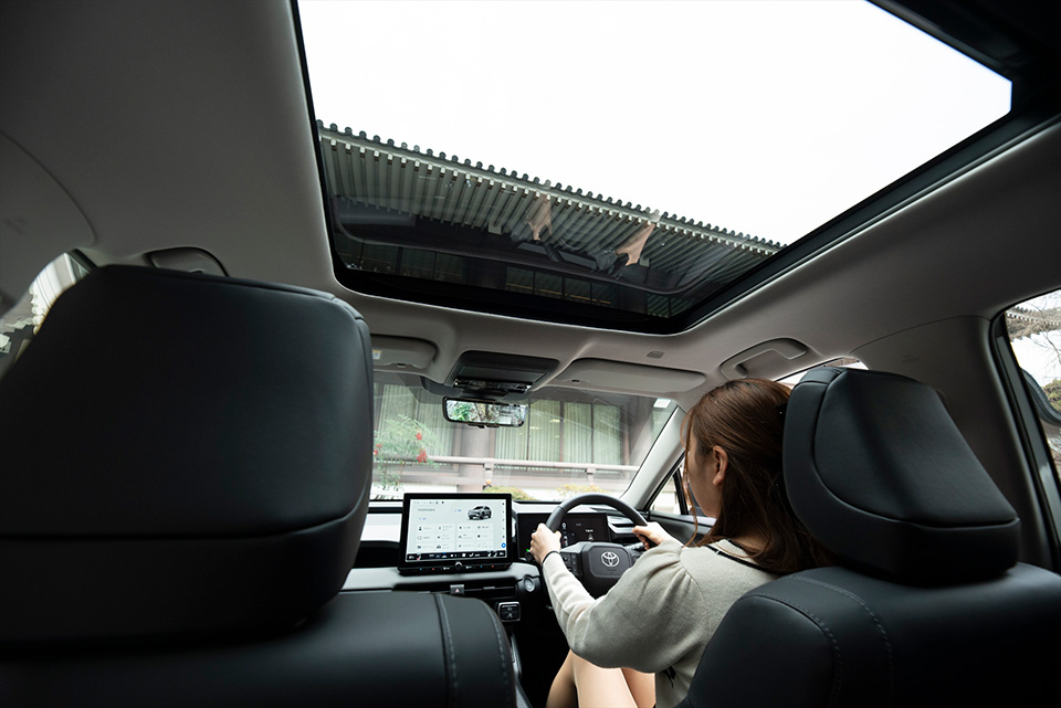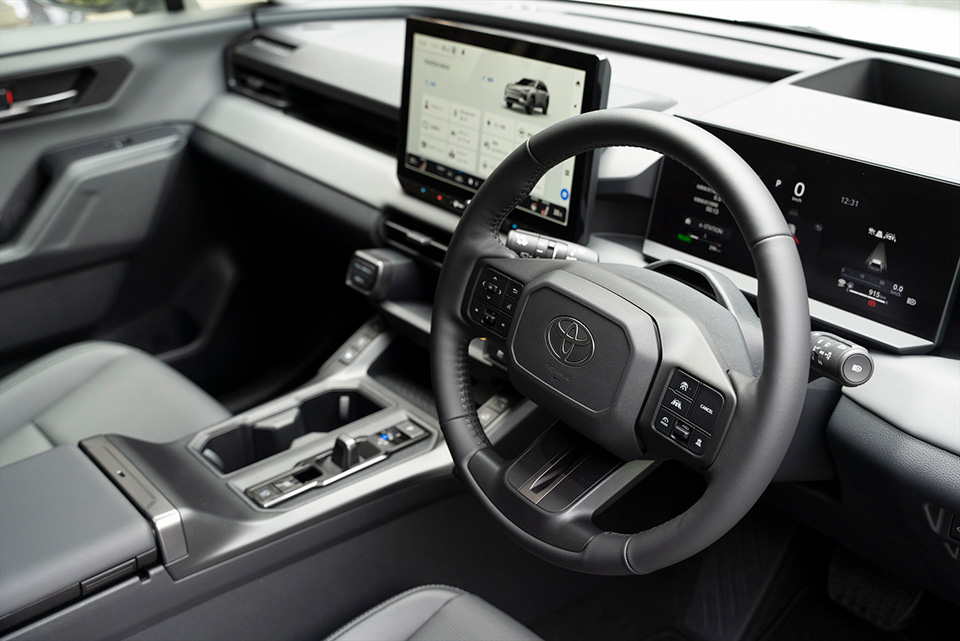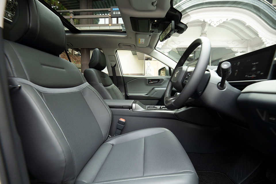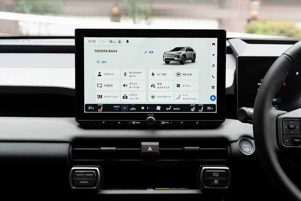 7年ぶりにフルモデルチェンジした「RAV4」は、フロントにハンマーヘッドデザインを採用し、迫力と重厚感を備えたスタイルへと進化しました。ボディサイズは先代とほぼ同じでありながら、街中でもひときわ強い存在感を放ちます。また、トヨタ初となるソフトウエア開発プラットフォーム「Arene(アリーン)」を採用し、最新の安全技術や機能開発を支える点も大きな特徴です。運転席周りは視線移動を減らし直感的に操作できる次世代のレイアウトに刷新され、12.9インチの大型センターディスプレイや液晶メーターの採用で先進的なコックピットとなっています。