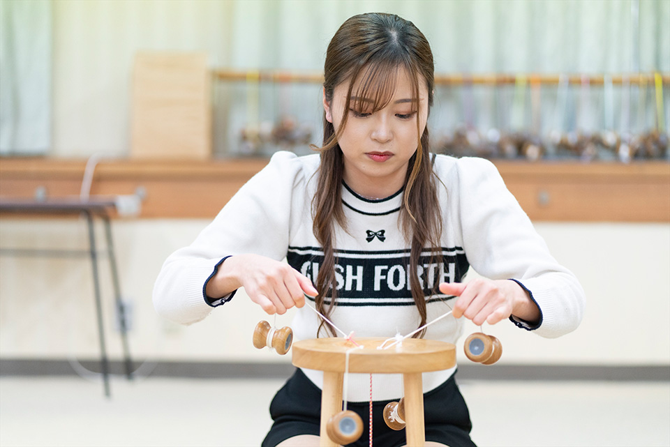 丸台におもり玉のついた4本の糸をセットしたら準備は完了