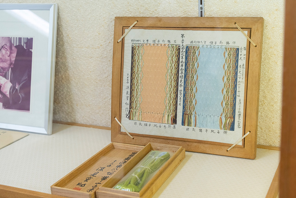 組みひも職人で唯一の人間国宝・深見重助氏の作品も展示されていました