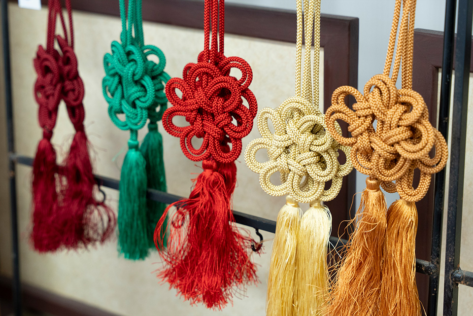 帯締めや鎧兜、巻物を留める紐など、組みひもの用途は実にさまざま