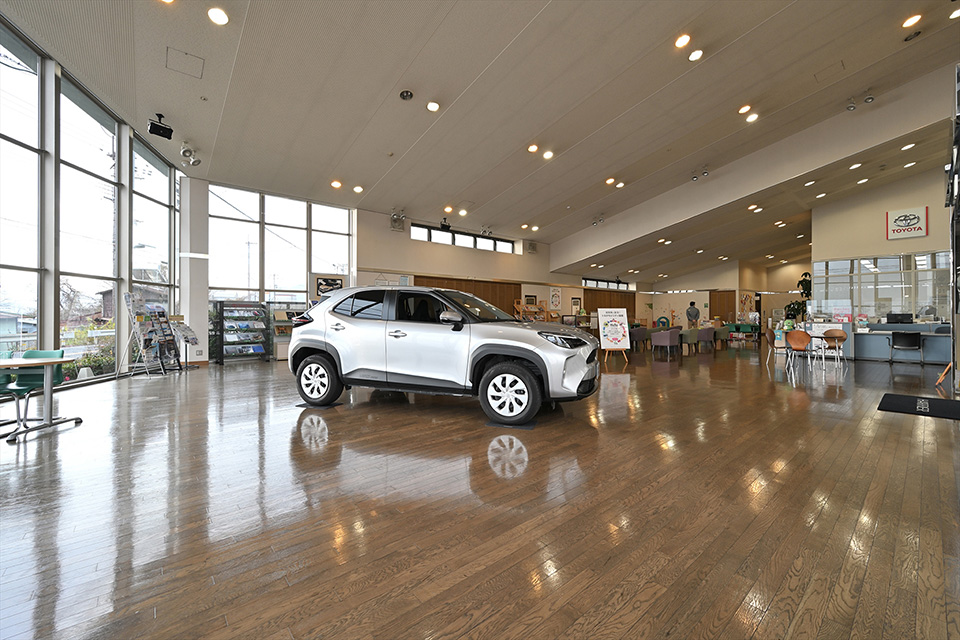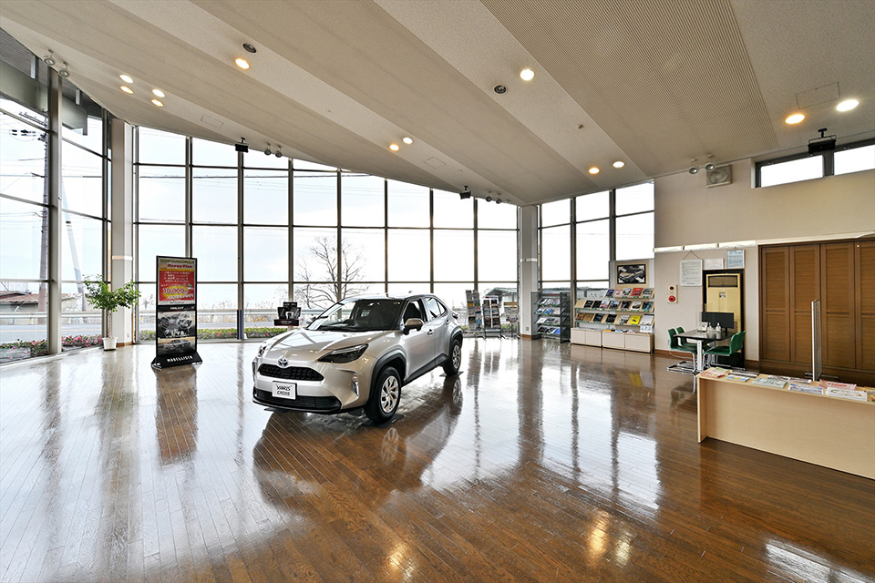 「トヨタモビリティ滋賀 唐崎店」は、ショールームの大きな窓から琵琶湖が一望でき、開放感たっぷりの居心地の良いお店です。クルマに関することなら何でもお任せください。