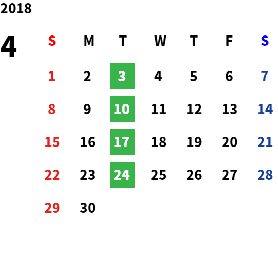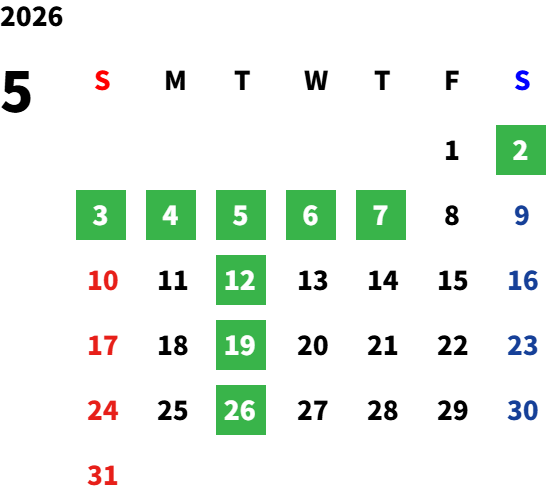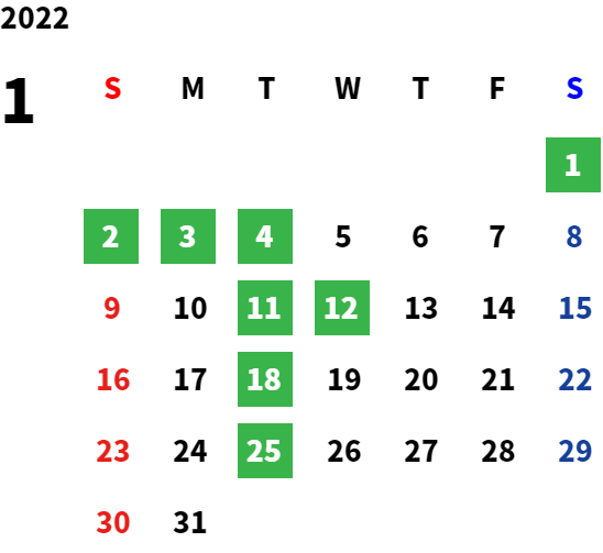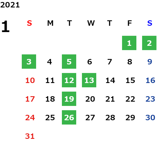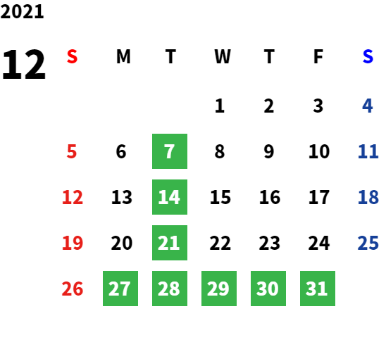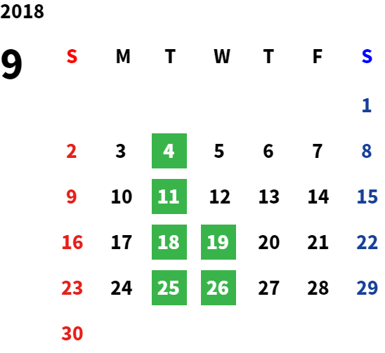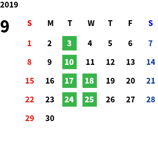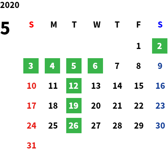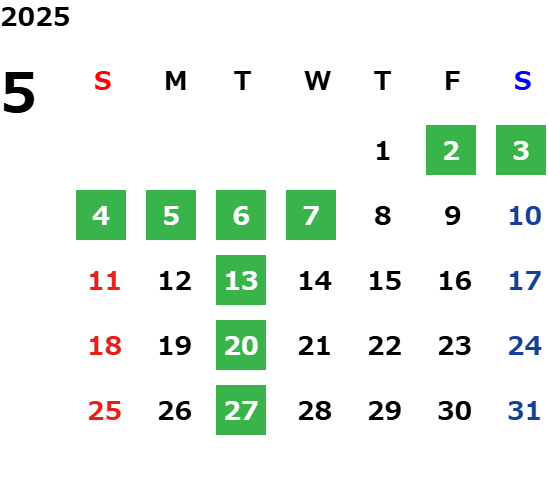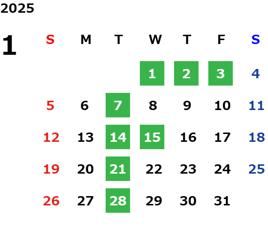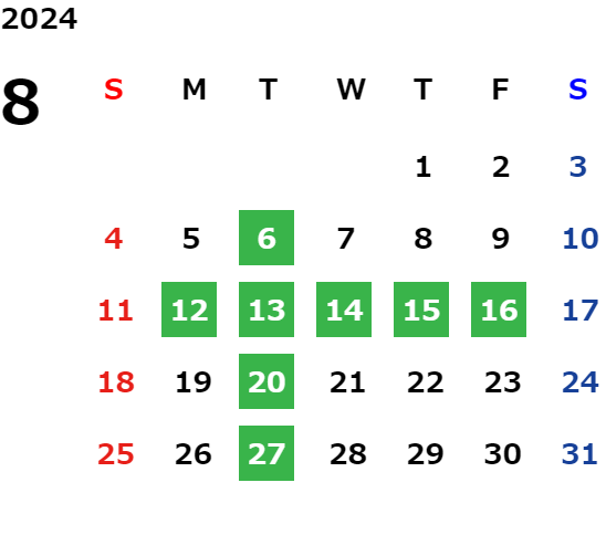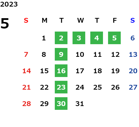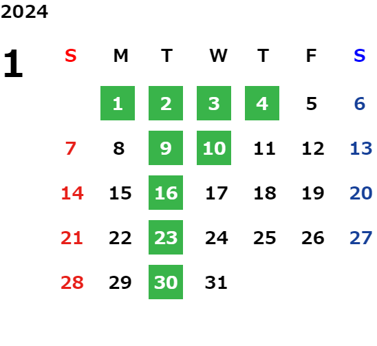 毎週火曜日(詳しくは営業カレンダーをご確認ください)