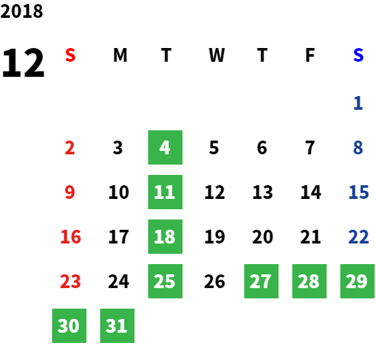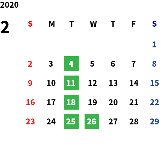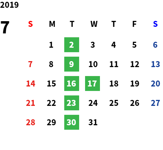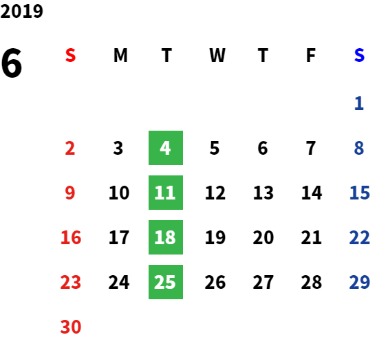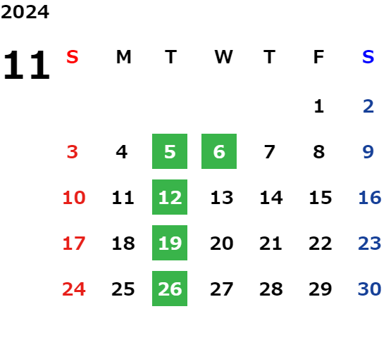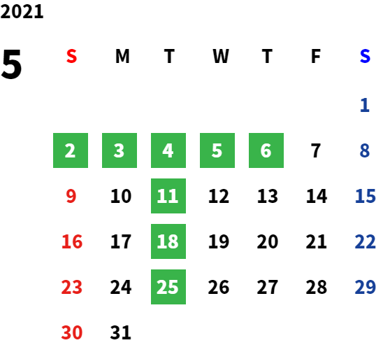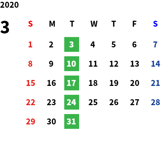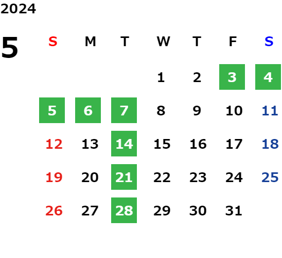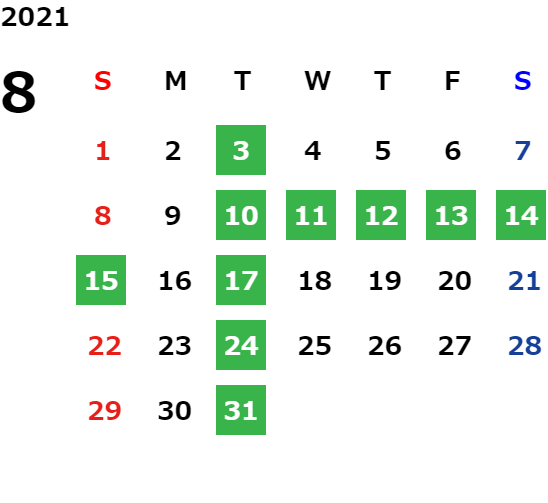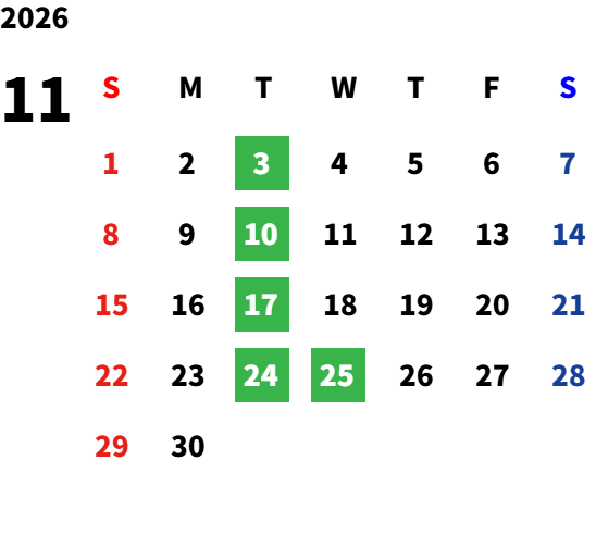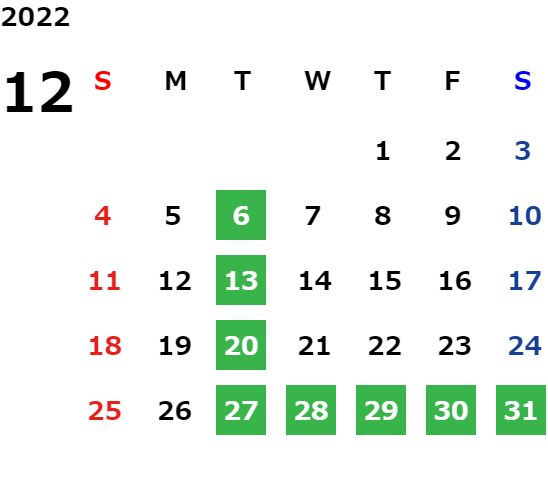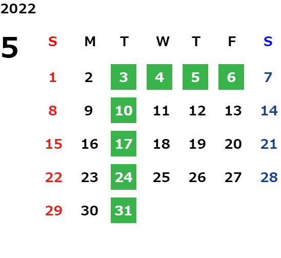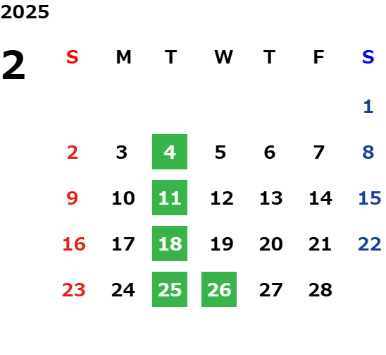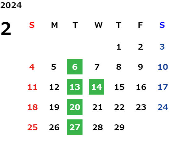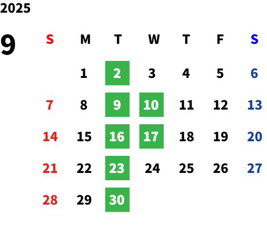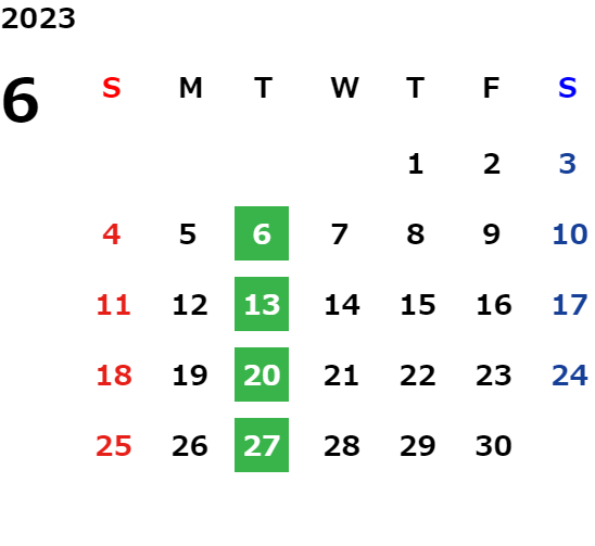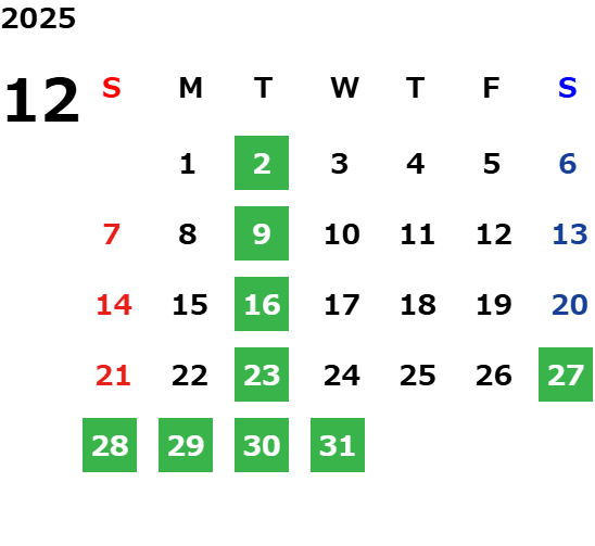 毎週火曜日(詳しくは営業カレンダーをご確認ください)