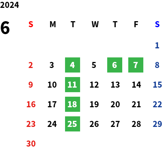 毎週火曜日(詳しくは営業カレンダーをご確認ください)